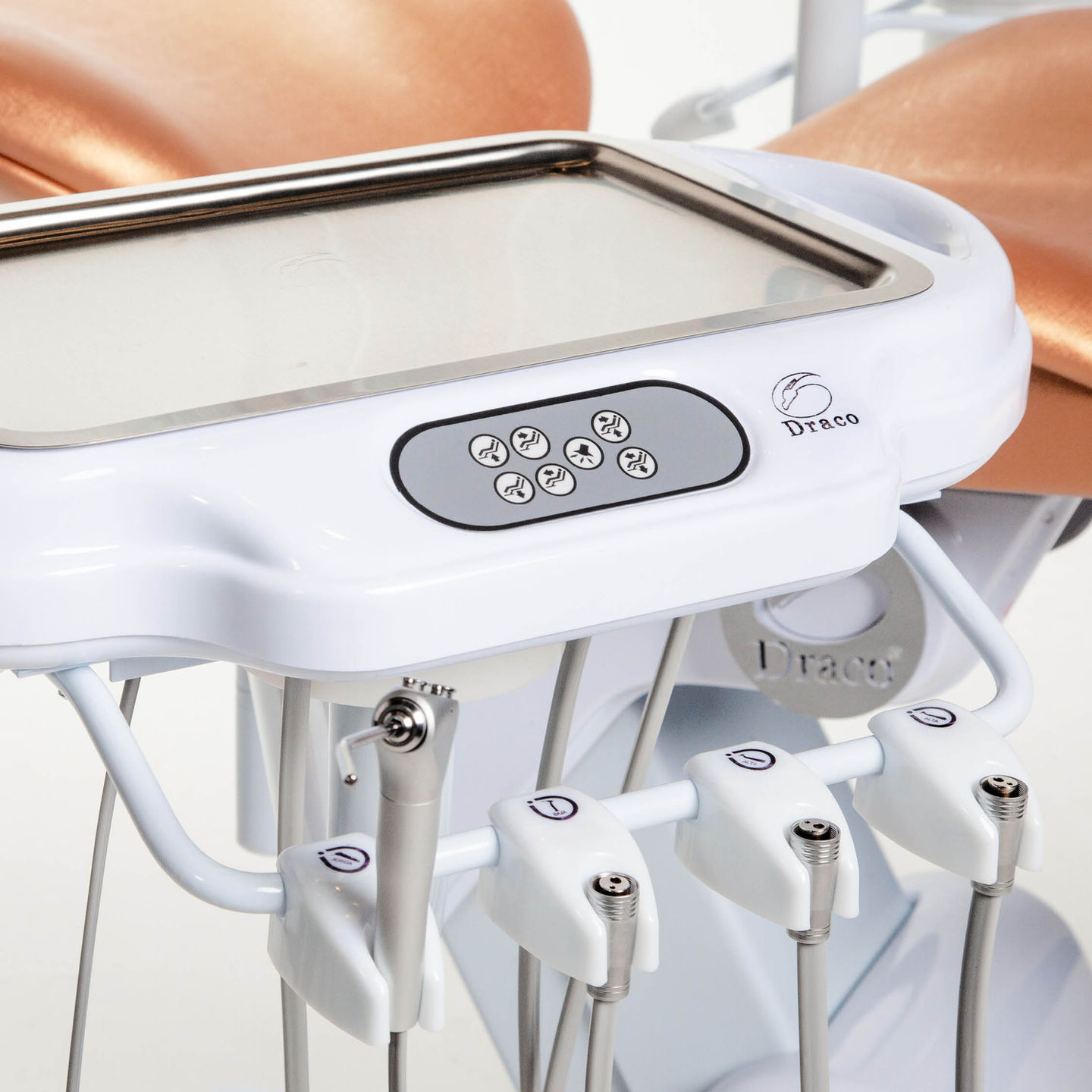 - Silla con espaldar amplio, con líneas ergonómicas para comodidad del odontólogo y el paciente.
